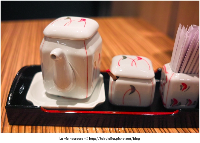 佐料放置了醬油、七味粉,精美的器皿,看起來有種高級的FU!