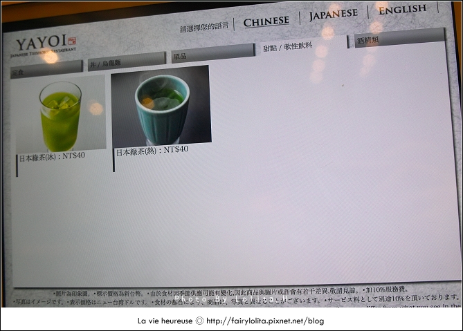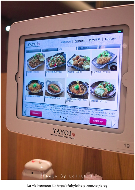 而桌上最吸睛的,莫過於這台ipad了!雖然服務生會給予Menu參考,不過點餐可是全靠這台呦!在裡面可以看到全部菜色,而且非常貼心的備有三種語言的文字說明,只是Order時要特別注意,因為訂單一送出去就不能更改了,服務生也會特別跟客人再叮嚀這一次,但別看我形容就搞得很緊張,其實操作還是很簡單:)