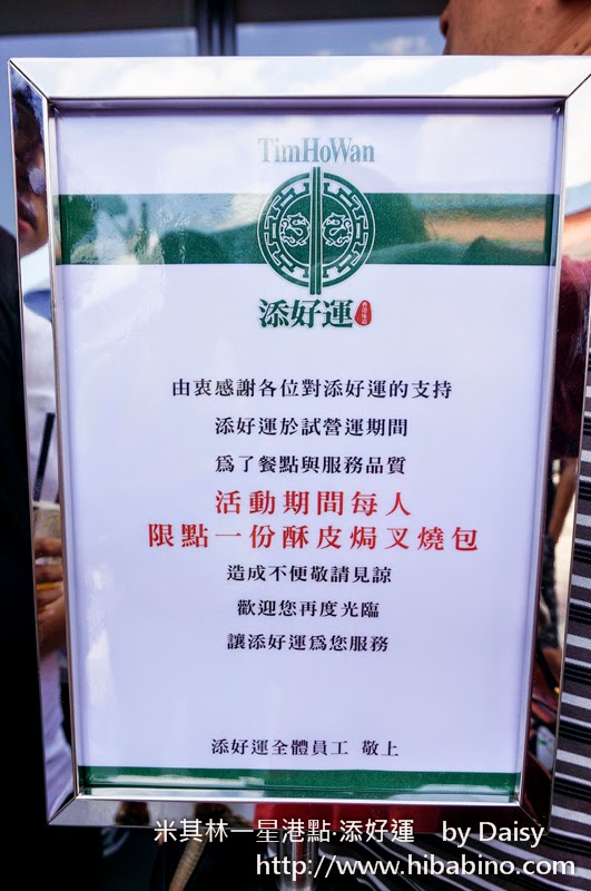 還會看到排隊隊伍中,會有一立牌寫著添好運試營運期間,每個人僅現點一份酥皮焗叉燒包,光看到這個...就知道這酥皮焗叉燒包一定是大招牌,必點的餐點項目之一!