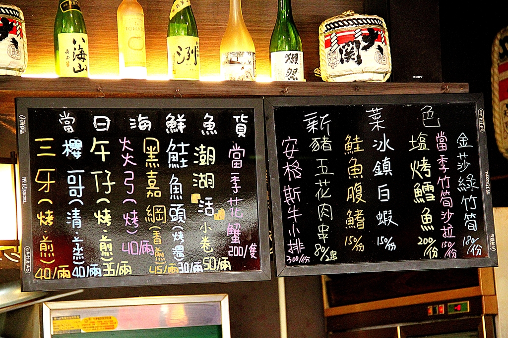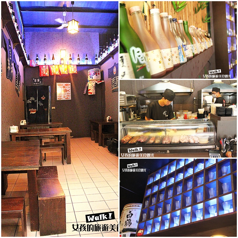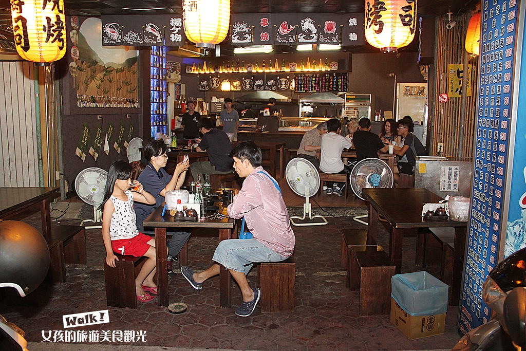 店內完全開放式空間,無冷氣唷!!!這種日式串燒店,一定少不了各式各樣日本酒瓶的布置