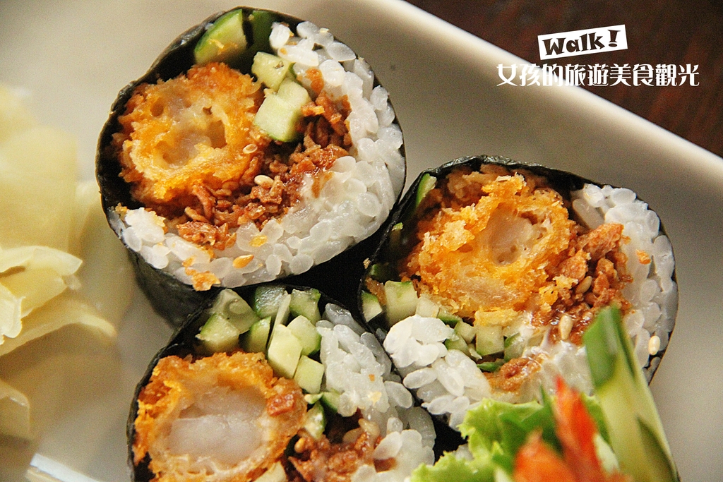 這道炸蝦壽司,老實說不需任何裝飾就非常誘人,