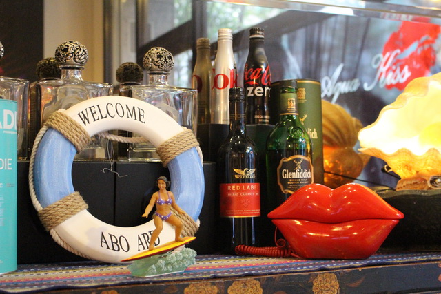 店裡的裝璜很有熱帶休閒的風情,大大的紅唇展現了店家的熱情,衝浪是老闆的興趣,店內可以看到許多和衝浪有關的裝飾。