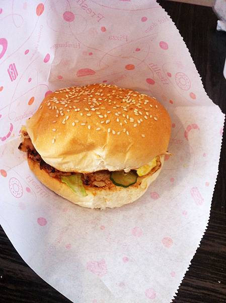 豬排肉的部分,也算大片,覆蓋整個漢堡面積,