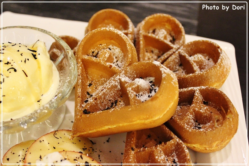 鬆餅為愛心花瓣的形狀,一眼就感到相當可愛,擁有四大片的份量很足且厚實。