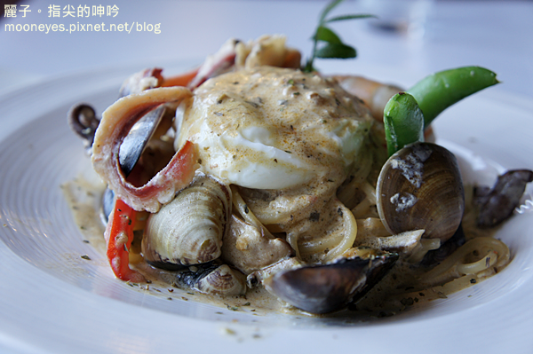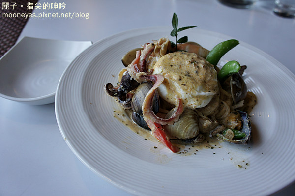 【奶油花香醬水波蛋海鮮義大利麵】$350