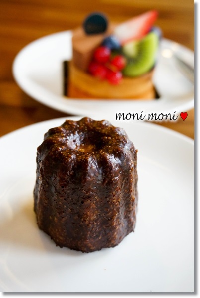 這款巧克力果然不失我望,的確有法式甜點的風格,切開咬下那脆硬的餅乾底盤,搭配上方濃郁黑巧克力慕斯,中間還有一層更深色的巧克力口感以及主廚特調的焦糖布蕾滑順口感,甜度較高,但是卻不失它獨特的風味,超棒的~搭配著略酸口味的水果,味道剛好一甜一酸,不膩口。