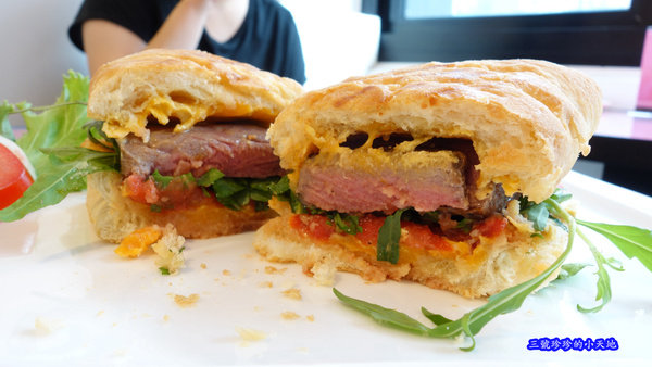 這三明治特別的地方在於,使用的是<牛排>,