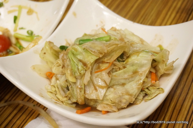 下面還鋪了一些清脆爽口的高麗菜絲喔,