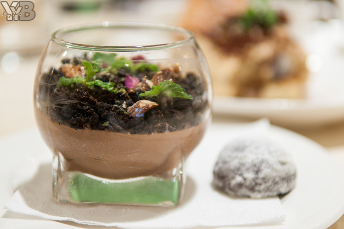 以為法國Cocoa Barry苦甜巧克力慕斯為底,上頭在鋪上略帶鹹味的巧克力土壤~