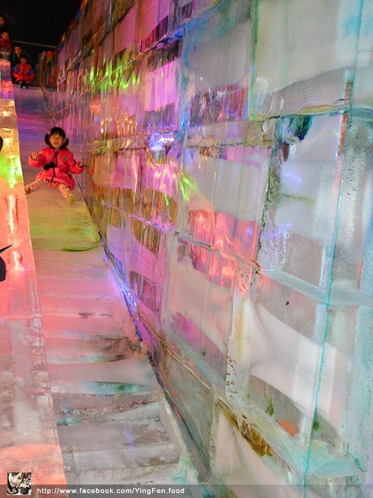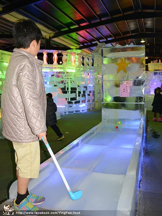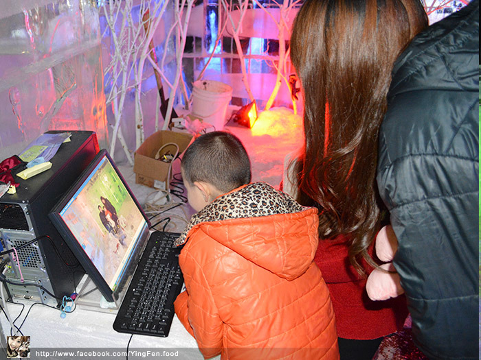 超大型的冰磚彈珠台,你們有沒有看到,這個小孩的雪衣是用租的,所以太大件。
