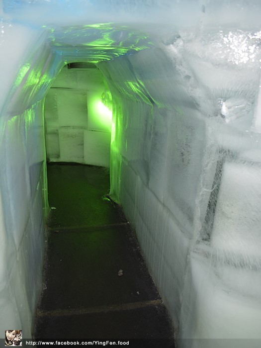 先把外套穿好,雖然外面很熱,穿大衣有點冒汗,不過一進去就知道身處在冰庫裡面越走越冷。