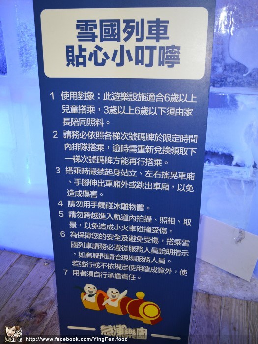 票卷後面有使用說明,雖然現場有提供雪衣租借50元,我比較喜歡自己的雪衣,因為尺寸比較適合自己,萬一在現場租一件很大件的雪衣,拍照起來會不好看,像是很怕冷的人可以多帶圍巾、帽子和手套,原本我沒有帶手套,逛一下子我一直拍照,手一直露出外面吹冷風,我的手感覺要凍僵像冰棒一樣超冷的,如果不冷那些冰塊就會融化,造型就跑掉了,另外想說的是鼻子不好或對冷空氣過敏的人,一定要帶口罩。