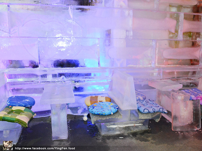 四周牆壁上都是冰塊,還好椅子地上不是冰塊,這裡有感覺溫暖到。