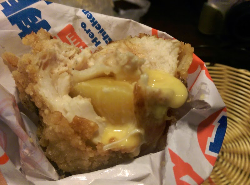 味道的部分很可惜,一開始咬下,起司爆出來的當下,起司味超濃郁的,此時是吃不到其他的味道,接著水蜜桃的風味也很分離,就單純水蜜桃口味,最後在吃雞排的時候,其實吃不太出來雞排本身的味道了。