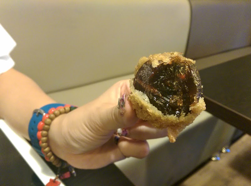 外面那層有點厚度,很可惜,口感上就比較沒那麼好,我個人比較喜歡無粉去炸的,最好中間的蛋黃還能稠稠的更好吃。