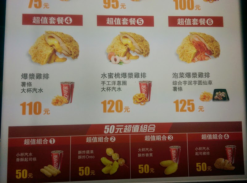 其中包含了今天要介紹的水蜜桃爆漿雞排與尚未吃過的泡菜爆漿雞排,裡面還有像麥當勞一樣推出超值組合套餐。