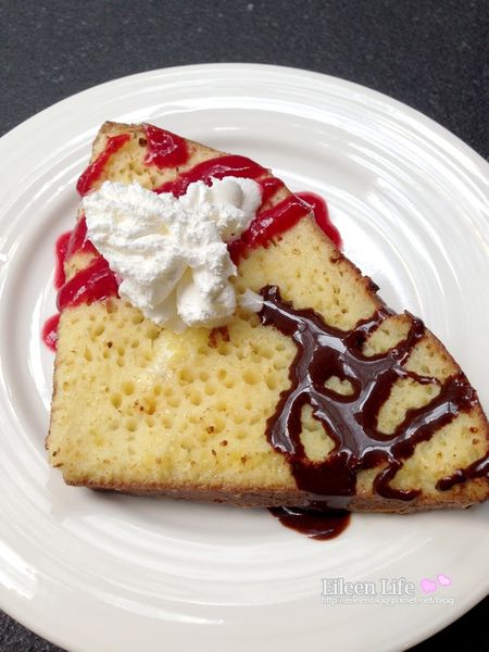 激推這份甜點,鬆餅本身的口感是像布丁蛋糕,但又有法式麵包的外表,