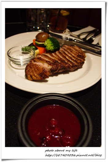 櫻桃鴨胸佐覆盆子醬 "赤赤"的鴨皮咬起來脆脆的 有脆皮鴨的fu