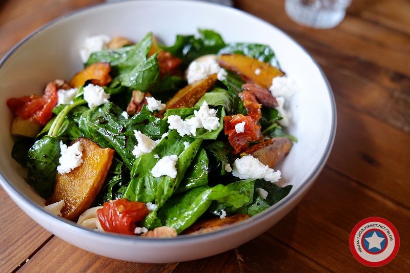 南瓜煎的很香 不管是沾點油醋醬或是和上頭的起司一同入口都很棒
