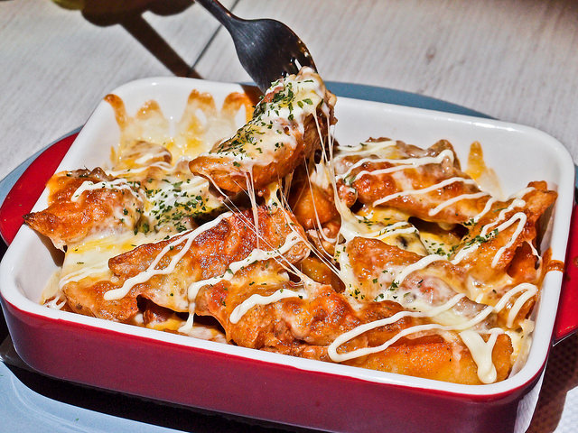 加上會牽絲的起司與肉醬......嗯,這菜也太肥美一點