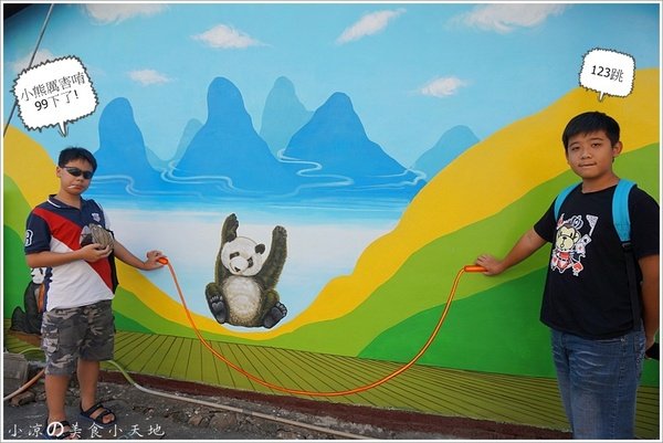 雲林縣斗南鎮石龜社區打造了3D貓熊社區,互動式彩繪設計讓小涼立馬飛奔而來