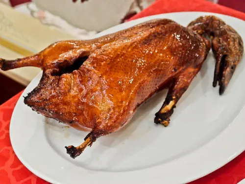 終於要嚐道第一口名氣響亮的烤鴨了,鴨肉吃起來真的很嫩,大口吃下真的很滿足,我想他和一般的烤鴨不一