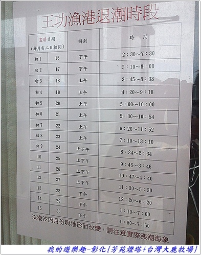 最後附上王功這邊的潮汐變化時刻表,來此遊憩的大家不妨參考一下