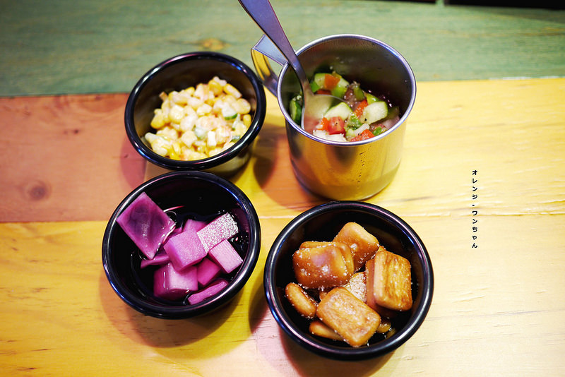 而這邊的餐點是以分食的方式..所以每個桌面會有個小盤跟兩支小夾子...