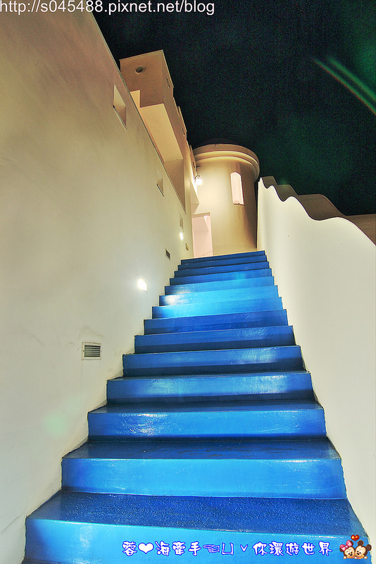 沿著藍與白相間的階梯來到我們當天入住的房間海洋SEA雙人房 ▼