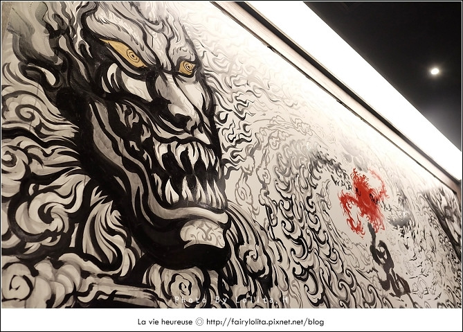 牆上是張大幅的惡鬼圖,巧妙呼應店名,對小朋友來說也許較為恐懼,但成年人如我們,倒覺得它氣勢極度磅礴呀!