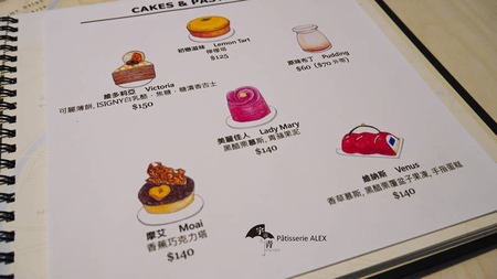▼▼▼Pâtisserie ALEX的菜單設計的好可愛,插畫的筆觸帶著一點童趣感。