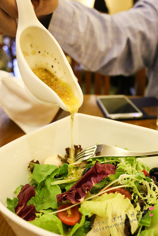 佐以新鮮特調油醋醬(圖左),現吃現淋