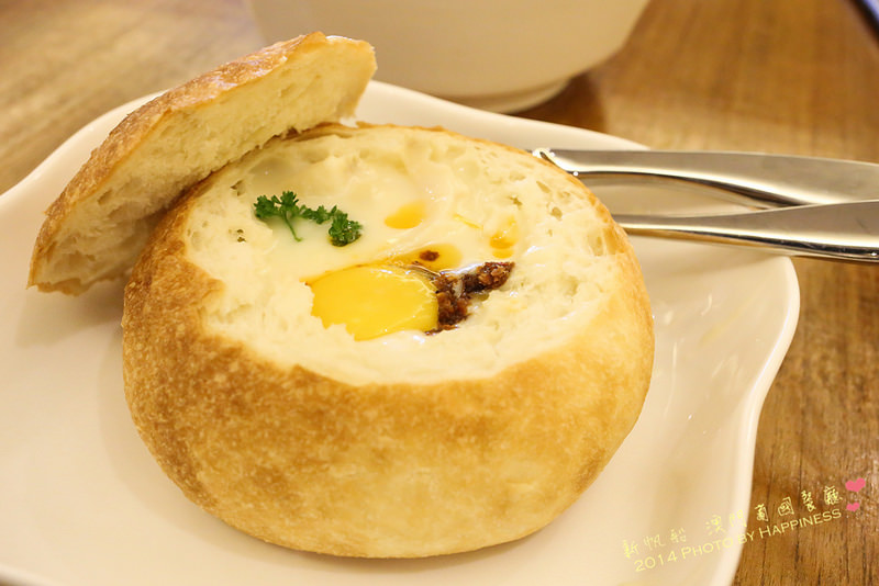 再如下圖般,切開麵包後,用麵包挖著濃湯料入口享用,風味絕妙!