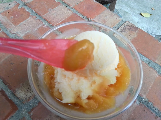 而將香橙果冰球和新鮮芒果冰沙、東方紅茶三者一同涼拌一下 XD