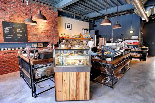 在Glacier Coffee Roasters咖啡館的櫃檯裡是個開放式的廚房,也就是沖泡咖啡的地方。