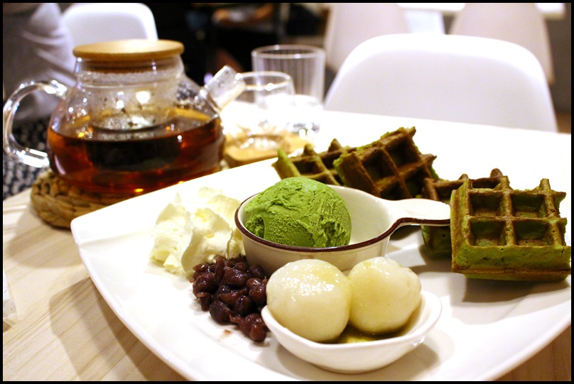 雖然是將抹茶粉糝入鬆餅粉中,但其實吃來抹茶味並不明顯,