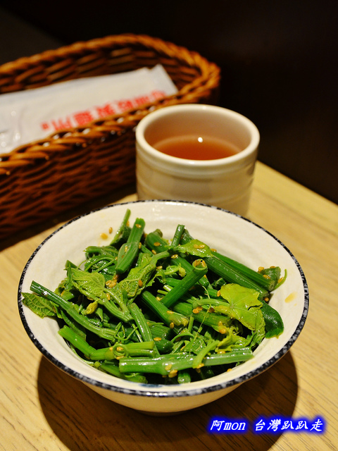 想說很久沒吃大餐,所以這次就都升級成套餐,還是選C套餐,共有5樣附餐這樣。今天的小菜是龍鬚菜,淋上和風醬汁與白芝麻吃起來就挺清爽開胃的。