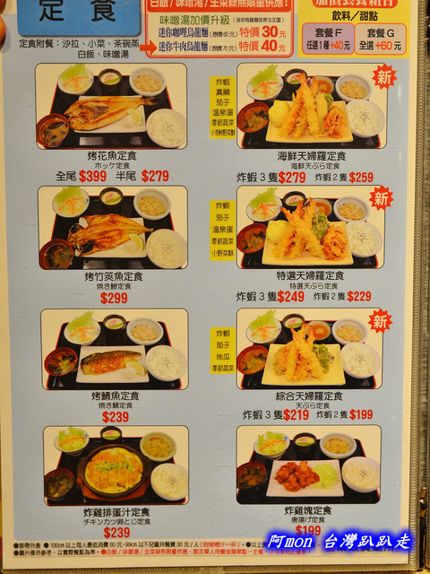 除了烏龍麵外,另外也還有日式定食可選喔,看模型感覺份量也不少。