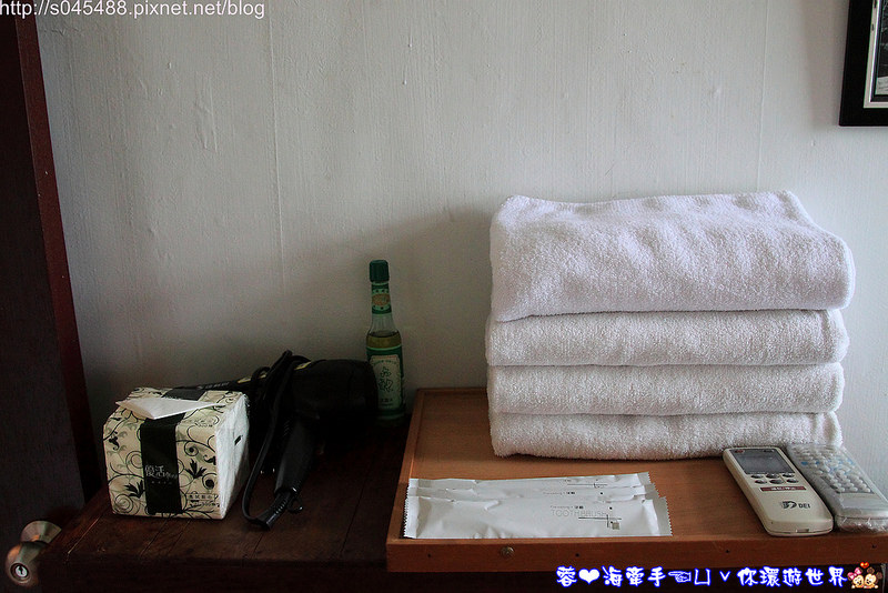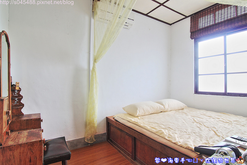 如果擔心有蚊子,兩旁也有蚊帳可以防止,電視機床櫃以及盥洗用具都準備齊全▼
