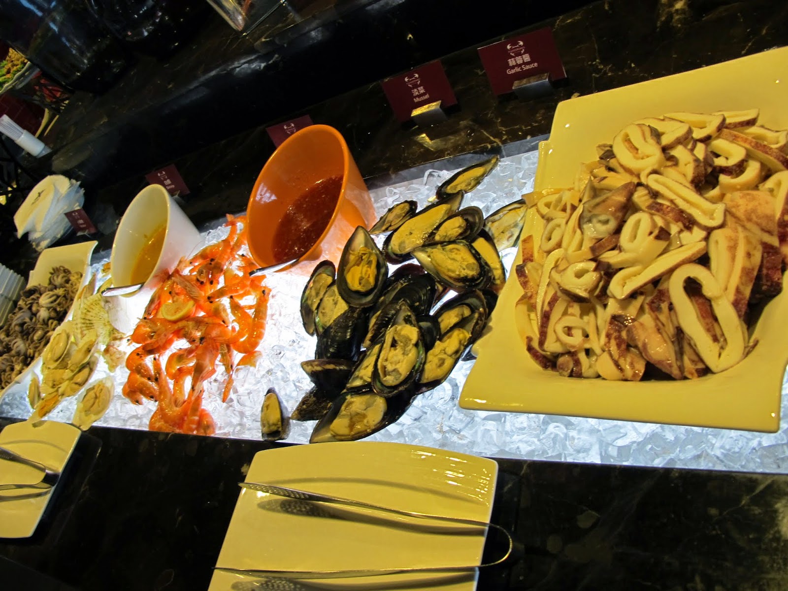 自助式餐檯的料理項目真的非常多,從生魚片到各式清燙海鮮、壽司、熟食區也繼續出現各式鮮炒海鮮,果然是近海地區,海產真是取之不盡的感覺啊!除了海鮮以外,我還看到德國豬腳,也處理得皮酥肉軟,有一定水準。