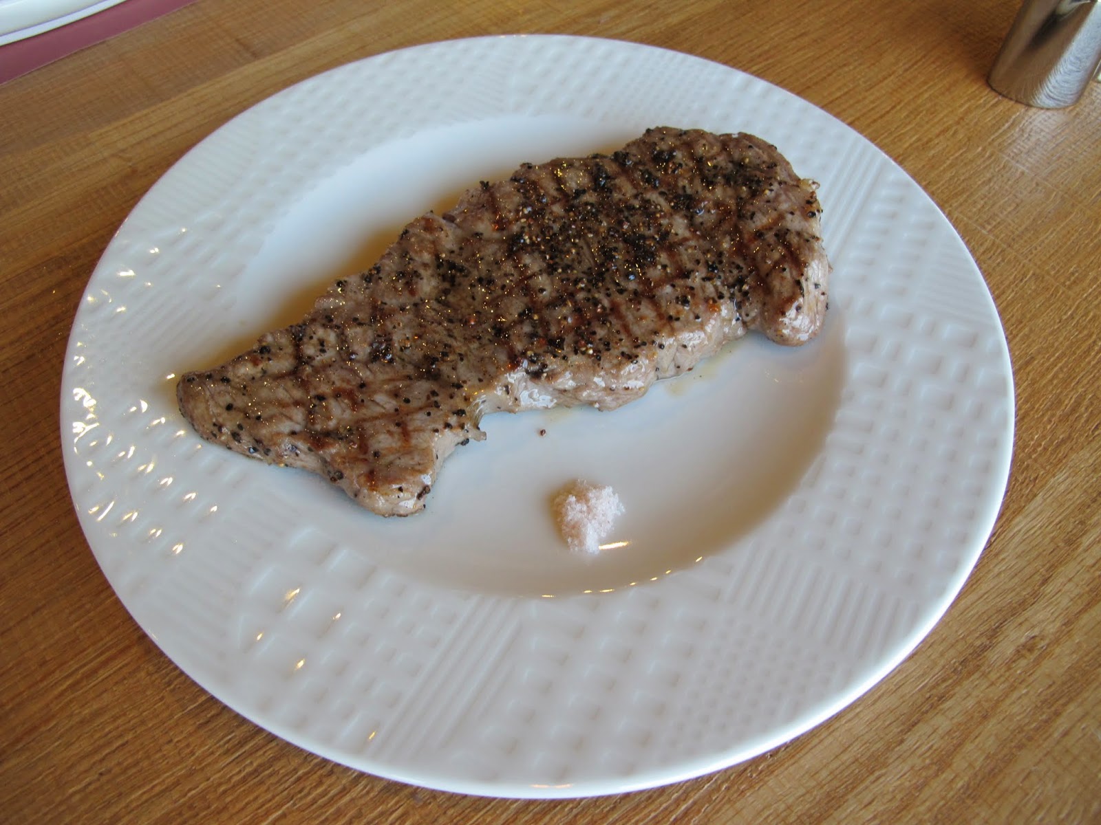 肋眼牛排我要求五分熟,但由於切得不厚,幾乎是七分熟的上桌了,選用的肉質部位軟嫩無筋,因此七分熟吃起來也很柔軟好切,由於牛排上已經調味過,擺放在一旁的玫瑰鹽我幾乎都沒用上,就吃光光了。