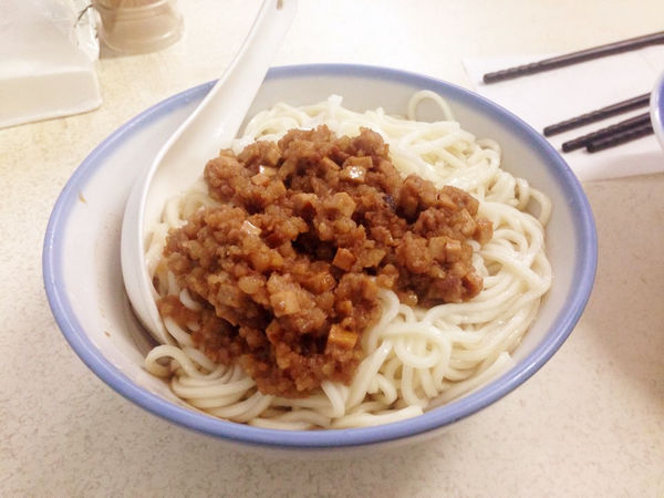 簡單地Q彈麵條,配上肉臊般的炸醬,
