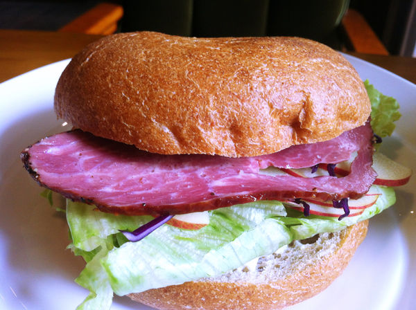 一大口將燻牛肉和貝果一起咬下去,整個很滿足,