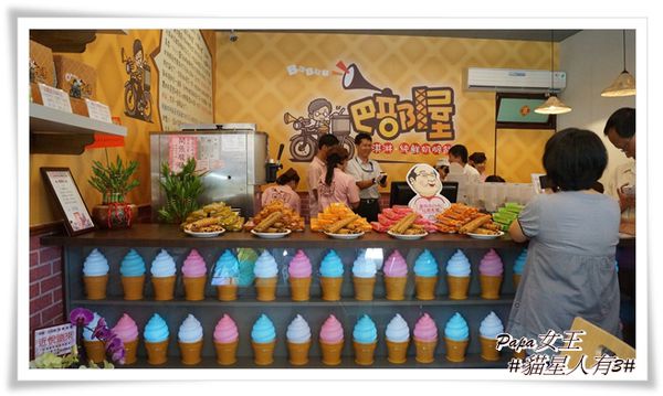 不過都沒拍到..所以就算了,但是現場有看到圓錐體型的木模 ~我點了咖啡甜筒+霜淇淋