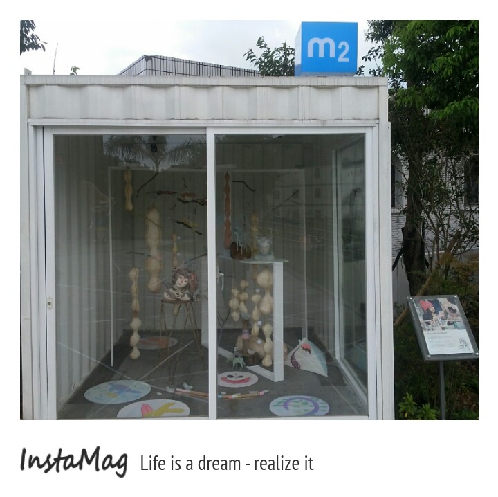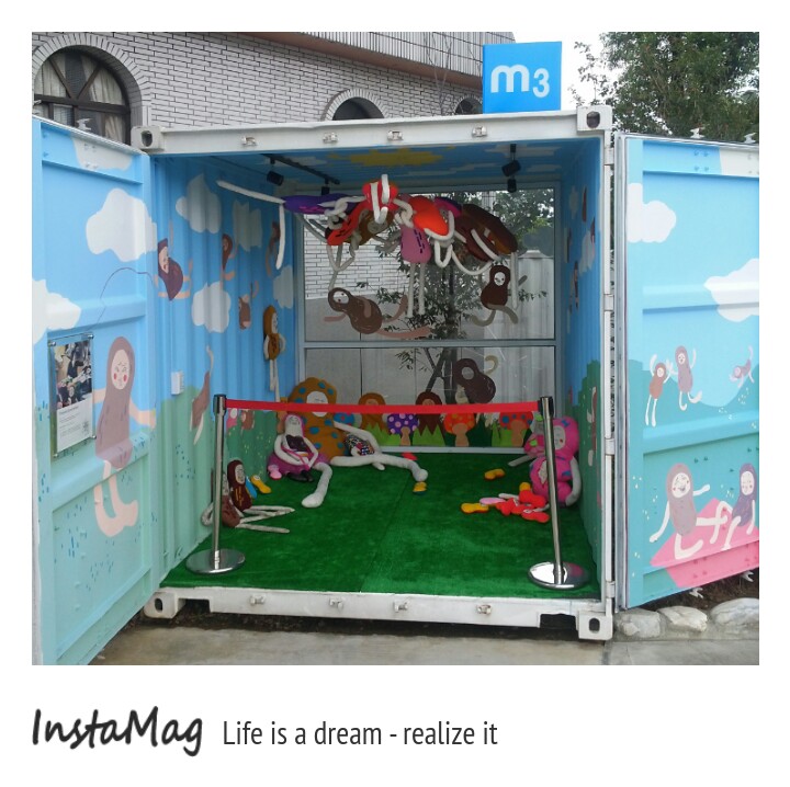 從斜坡走上去豆鎮市集文創藝術區,雪白色的貨櫃,欣賞裡面由台灣藝術家所進駐創作的作品四個貨櫃屋,作者表現手法都很不一樣,但都非常很有意境耶!!