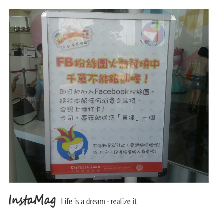 加入卡司蒂菈樂園打卡合照上傳會送1個果凍