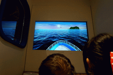 於上方的駕駛艙,小孩們都迫不及待的想要當起令人崇拜的船長,看著前方螢幕的影像,不停