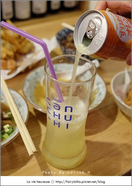 這飲料還真不是普通的貴,其實就是日本的瓶裝飲料嘛!然後再附你一個透明杯就要100大洋,看在它是遠渡重洋過來台灣的日本沙瓦,就不計較了!XD