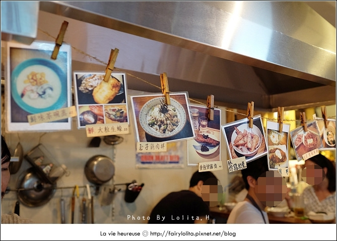 用餐環境清一色全是採用淺色原木的素材,整體空間投以略為昏暗的鵝黃燈光,像是居酒屋,又帶了點家常日式小館的味道,雖然僅用日本圖裝飾牆面,但卻是一幅畫龍點晴的存在。