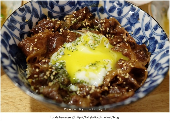 拌入蛋液的燒肉及米飯,口感變得更加濕潤而滑嫩,牛肉的醬油味非常鮮明,口感偏鹹,其中還帶有一點點味醂的甜氣,也許是期待值太高,其實並沒有想像中那樣讓人驚豔,但也還不錯啦!